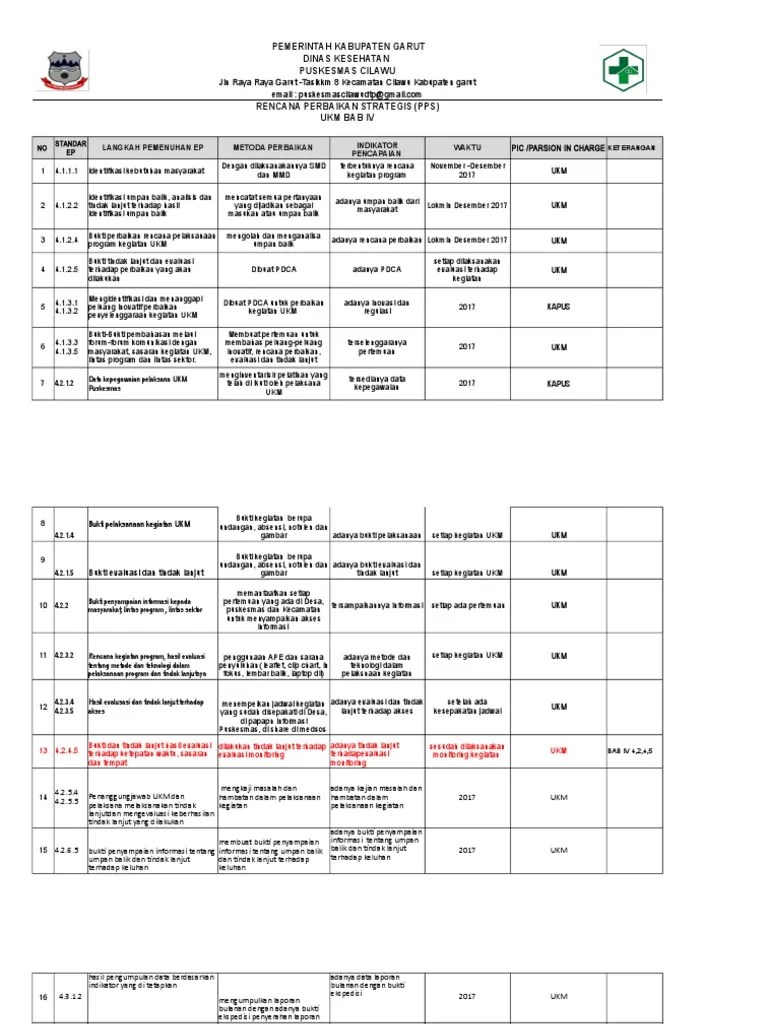 Bukti perbaikan rencana pelaksanaan program kegiatan ukm. 4.1.2.5 bukti tindak lanjut dan evaluasi thd perbaikan. Download identifikasi dokumen bab iv.docx. Kerangka acuan, tahapan, jadwal kegiatan ukm, dan bukti sosialisasi. Sop komunikasi dengan masyarakat dan sasaran ukm puskesmas.